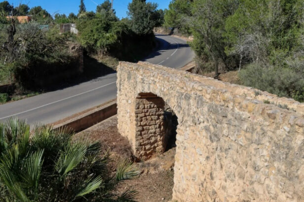 El Ayuntamiento está eliminando la vegetación que trepaba por los muros del acueducto y lo deterioraban, además de volver a instalar un panel informativo